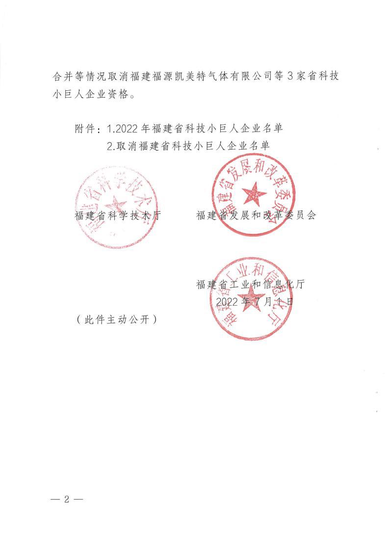 ? 2022年7月1日由福建省科學技術廳、福建省發(fā)展和改革委員會、福建省工業(yè)和信息化廳認定潤科生物工程(福建)有限公司為福建省“科技小巨人”企業(yè)。